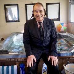 Big Bird the Clown chilled in a hot tub full of honey with Messmaster